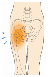 Skausmas jaučiamas vidinėje šlaunies viršutinėje dalyje;